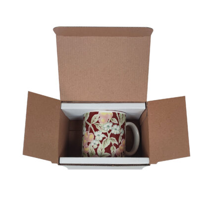 این نوع کارتن ماگ از جنس مقوای ایفلوت ساخته شده. مقوای جعبه لیوان سه لایهاس و به همین دلیله که استحکام خوبی داره. همچنین از یک هولدر برای نگه داشتن لیوان درون بستهبندی استفاده میشه که باعث ثابت نگه داشتن لیوان در باکس ماگ و در نتیجه آسب ندیدنش میشه.
